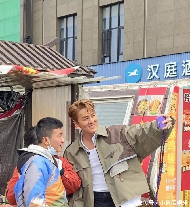 行至某市井小摊,金黄脆皮肠在铁架上滋滋作响,他瞬间化身吃货侦探,甘当半小时排队路人了。 老板初时未识真身,待人群聚成星火燎原之势,方知遇上顶级流量,瞳孔地震之余忙求合影。 吴克群反手就是个熊抱,明星包袱碎成二维码,扫码即得亲民认证。